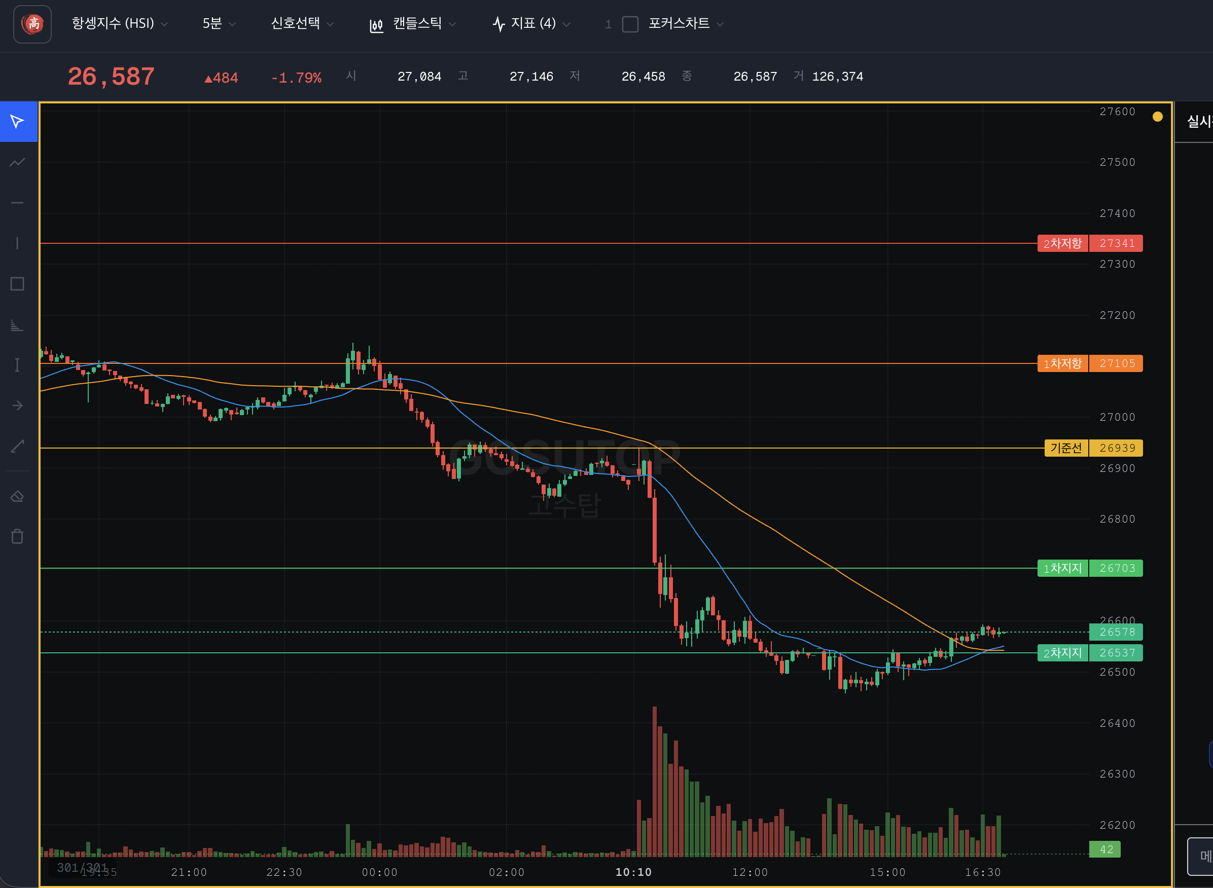 - 지지저항 그룹에서 고수 지지저항1 또는 고수 지지저항2 활성화
