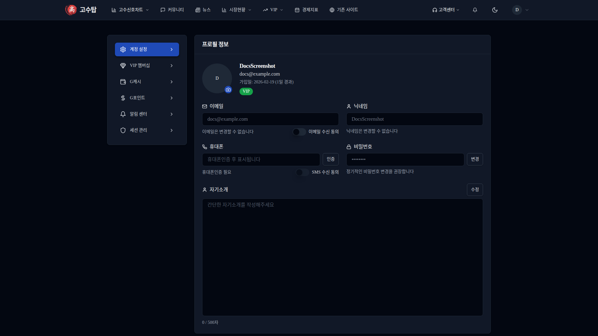 | VIP 멤버십 | VIP 구독 현황, AI 크레딧, 취소/연장 | 구독 관리 |